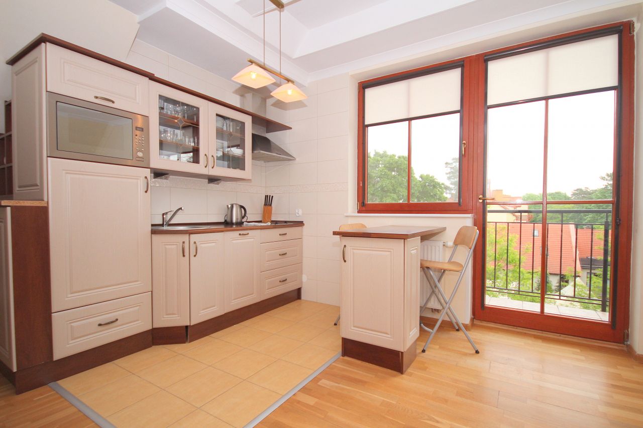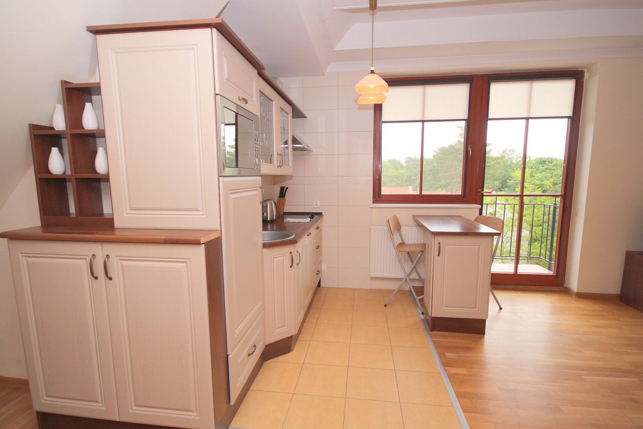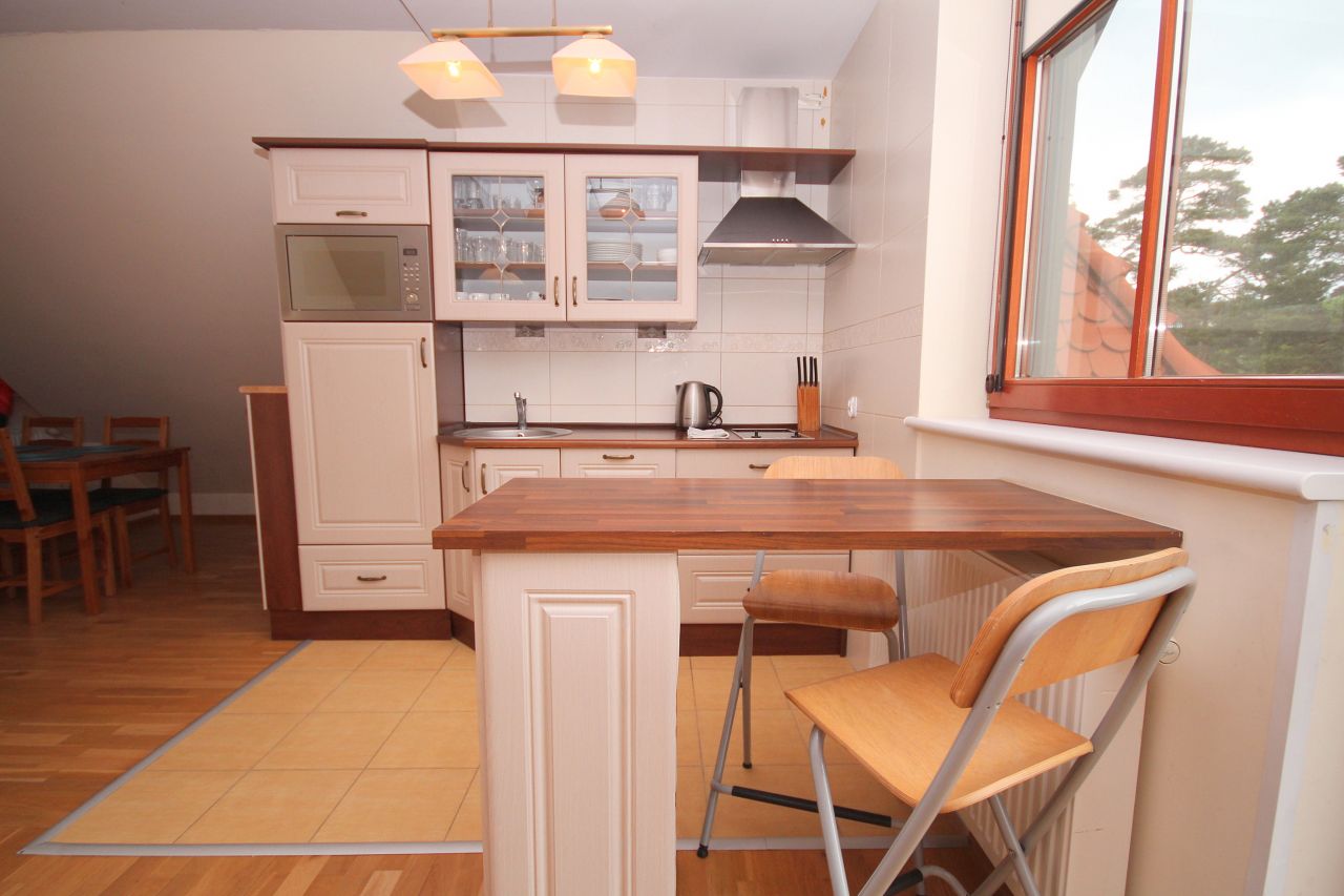 - kuchnia w pełni wyposażona (lodówka, czajnik bezprzewodowy, garnki, naczynia, sztućce itp.), stół + krzesła