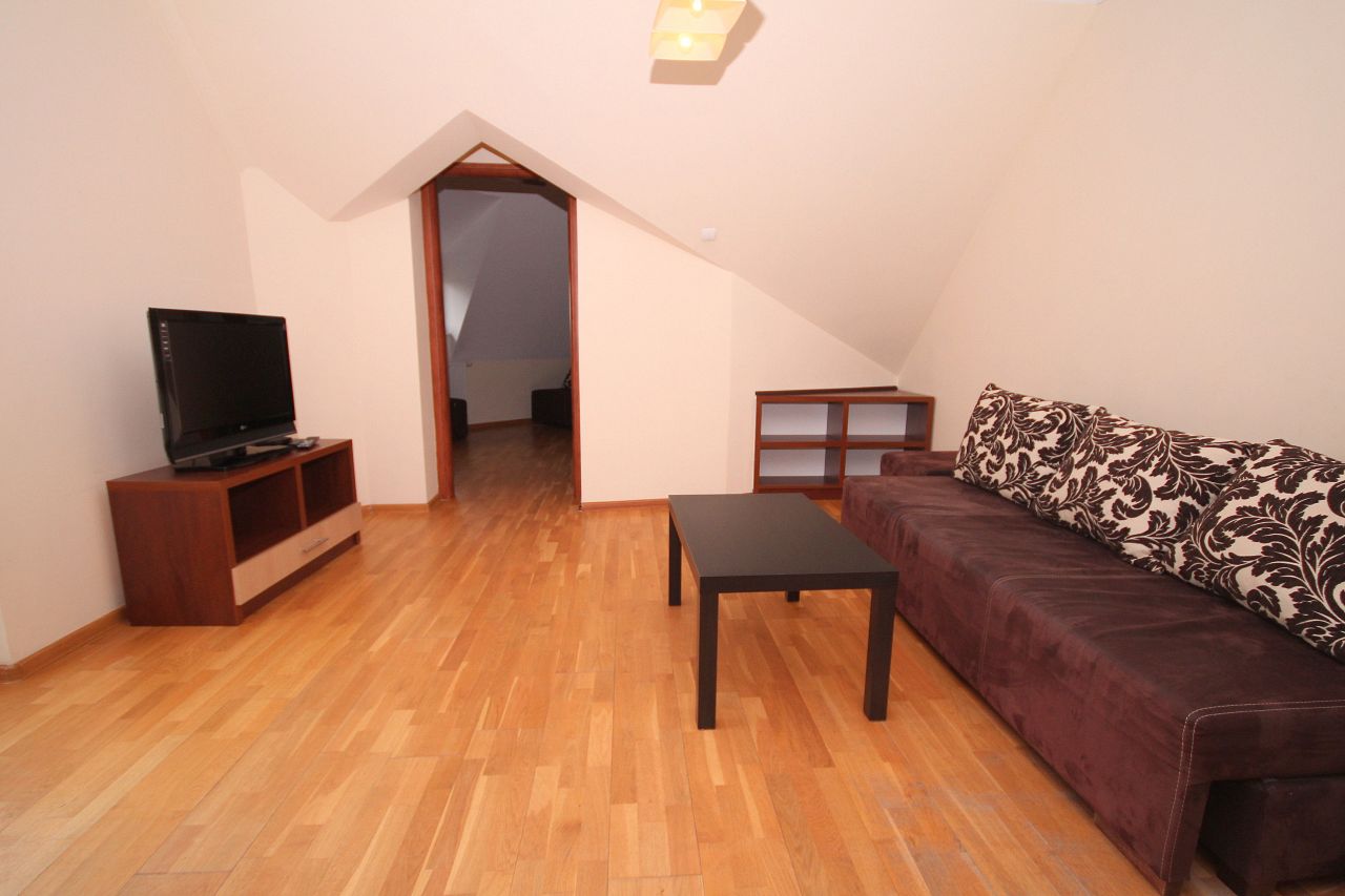 - Dwie rozkładane 2-osobowe kanapy, TV, balkon;
