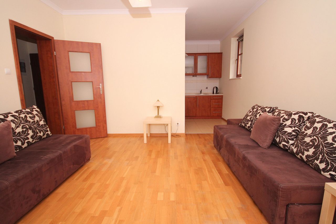 Apartament 2-pokojowy. Parter. Max 4 osoby. W salonie do spania rozkładana kanapa, aneks kuchenny, tv.